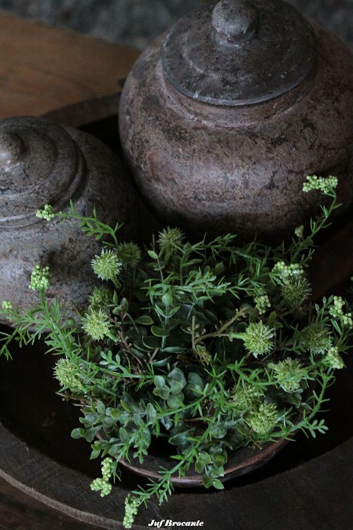 Een prachtige opvuller, deze bol met groen en groene bloemetjes. Een mooie opvuller voor een schaal, kruik of dienblad.